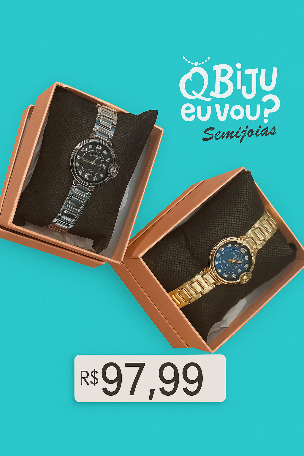 * Relógio dourado com mostrador azul, que traz um toque moderno e marcante. O contraste entre o dourado e o azul cria um visual luxuoso e cheio de estilo.