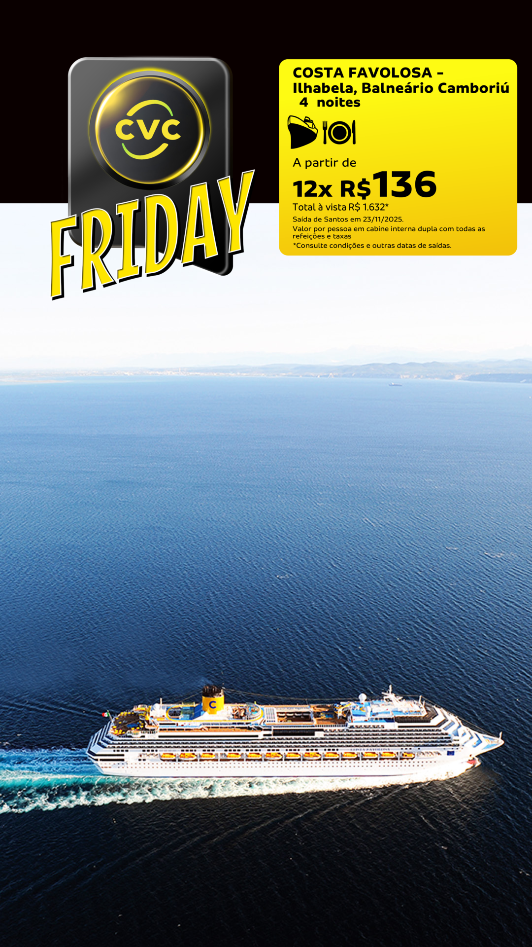 12x de R$ 136 por pessoa! Total à vista: R$ 1.632.