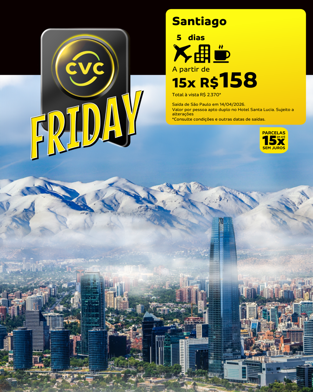 15x de R$ 158 por pessoa! Total à vista: R$ 2.370.