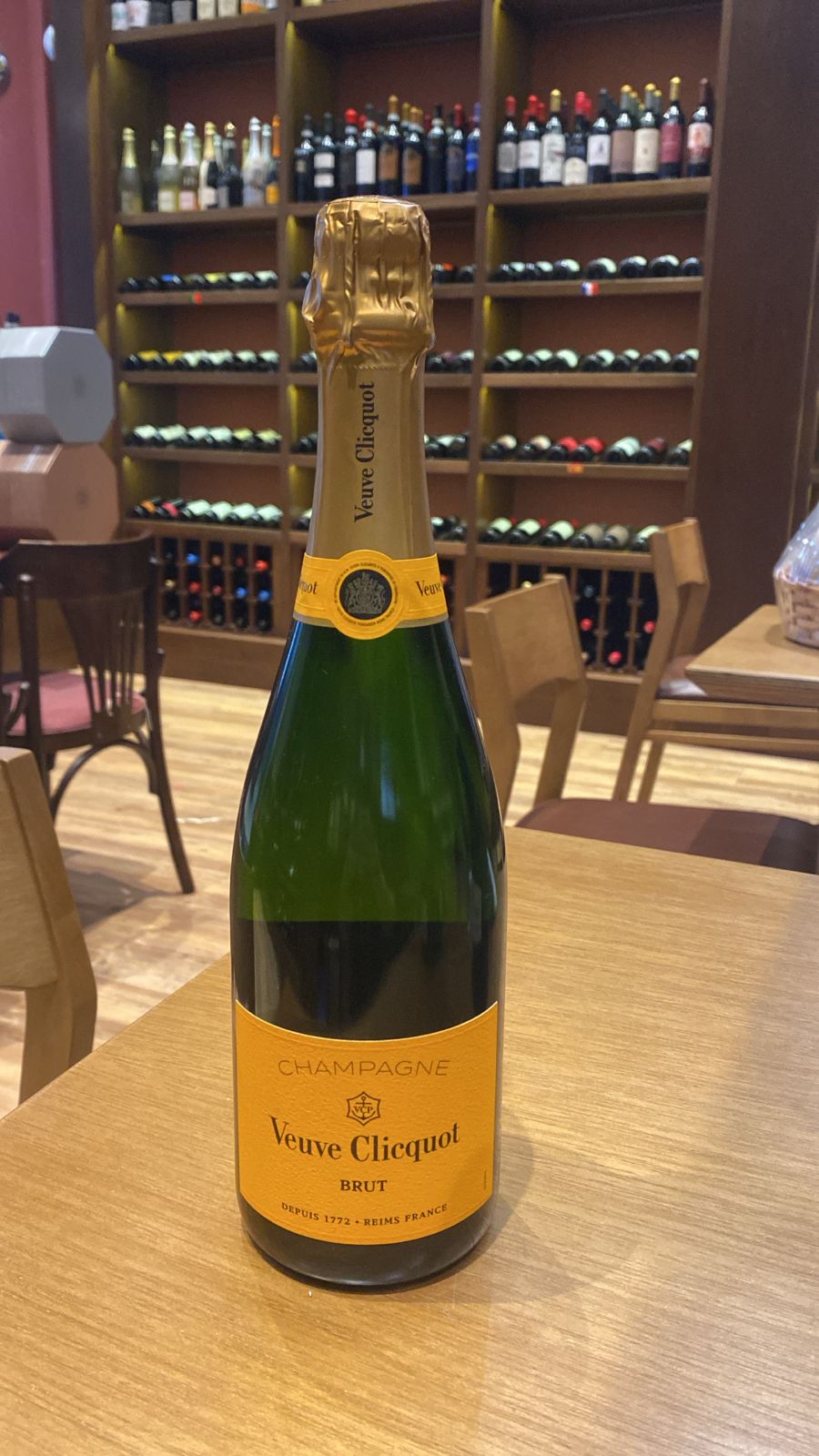 A ficha técnica do Veuve Clicquot Brut (Yellow Label) destaca sua origem na França, região de Champagne, com blend de Pinot Noir, Chardonnay e Pinot Meunier, exibindo cor dourada com perlage fina, aromas de frutas brancas, brioche e baunilha, paladar cremoso, fresco, mineral, com final persistente, ideal como aperitivo ou com frutos do mar e sushis, servido entre 6-8°C, e teor alcoólico de cerca de 12%.