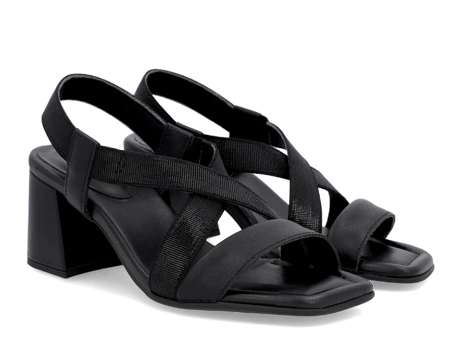 Sandália Salto Bloco Elástico Preta
